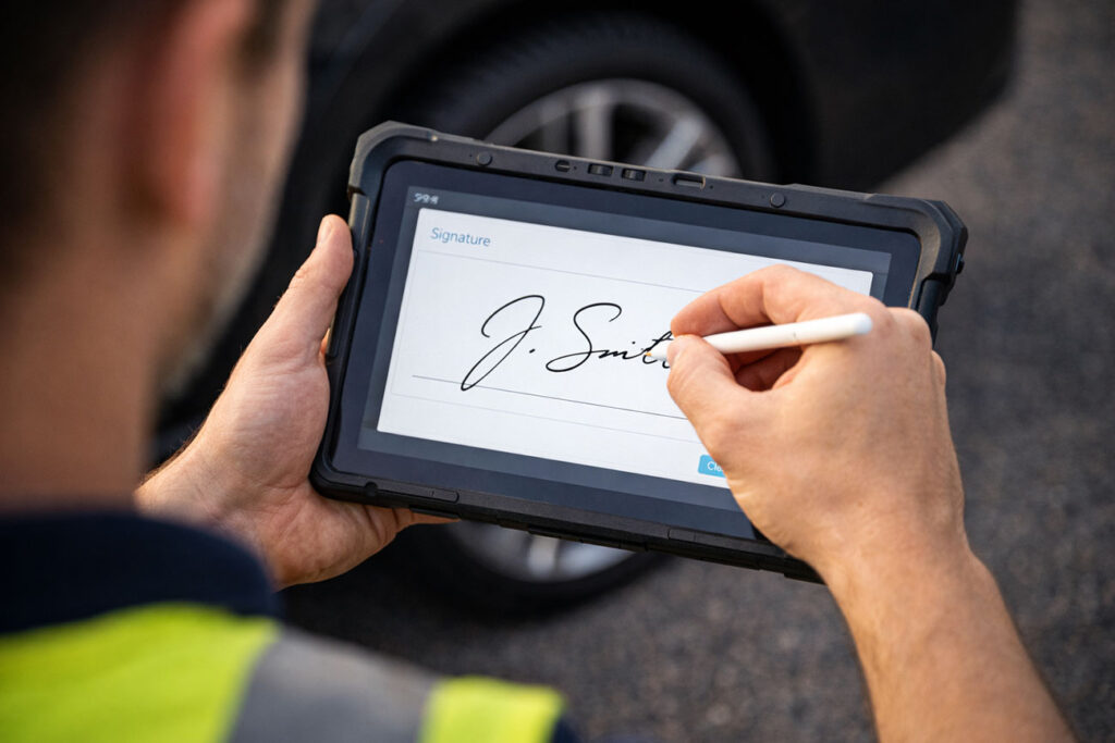 Our technicians wear high-visibility gear and use beacons to work safely at the roadside.