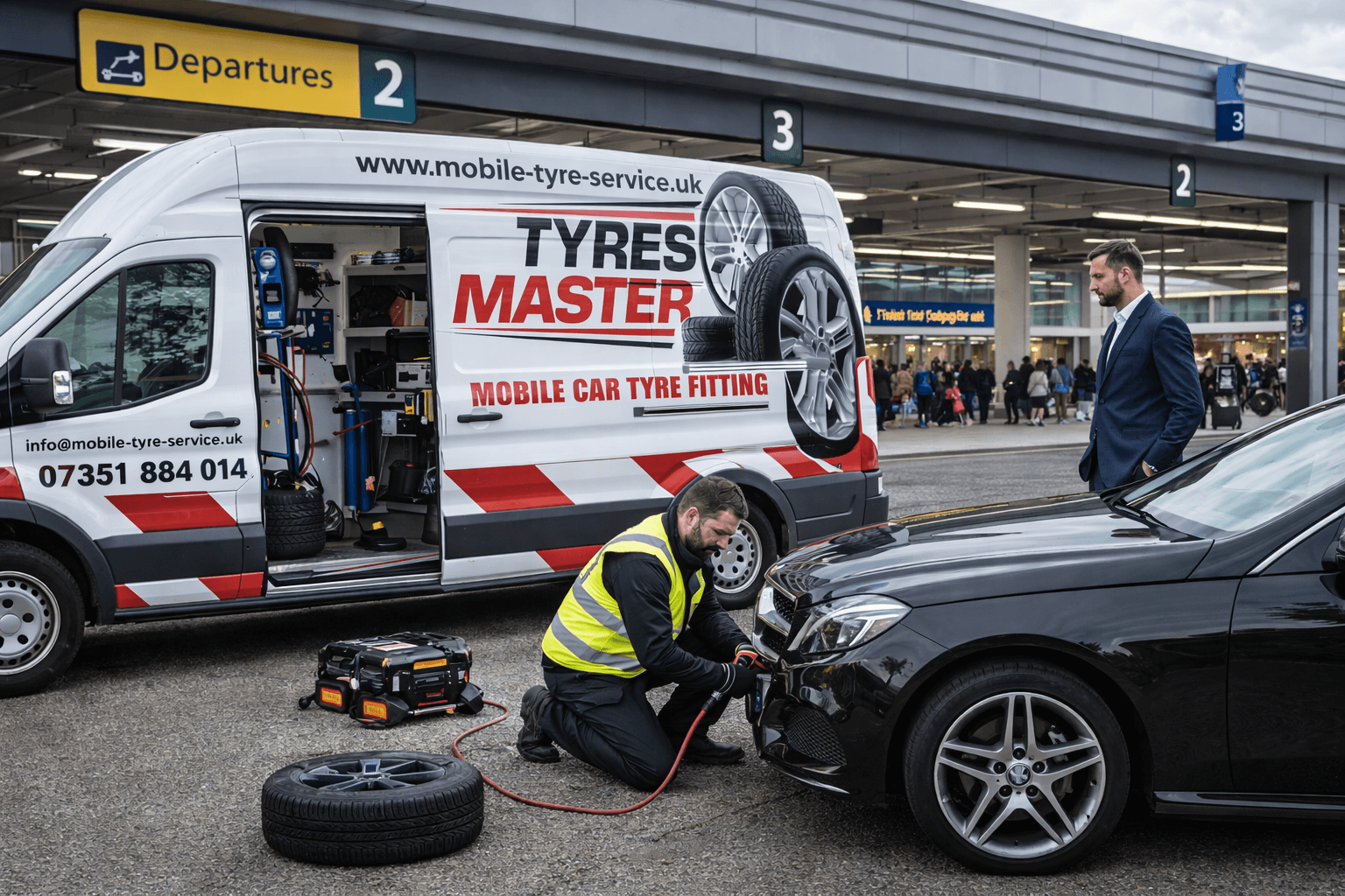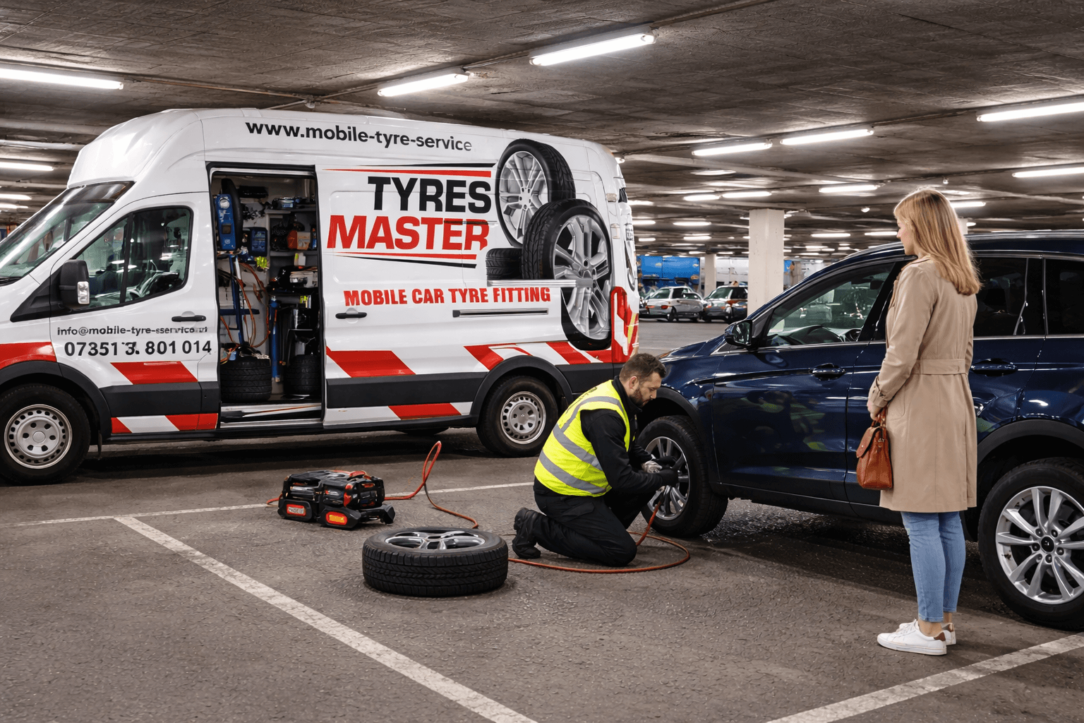 Our vans are essentially "tyre depots on wheels," equipped with balancing machines and compressors.